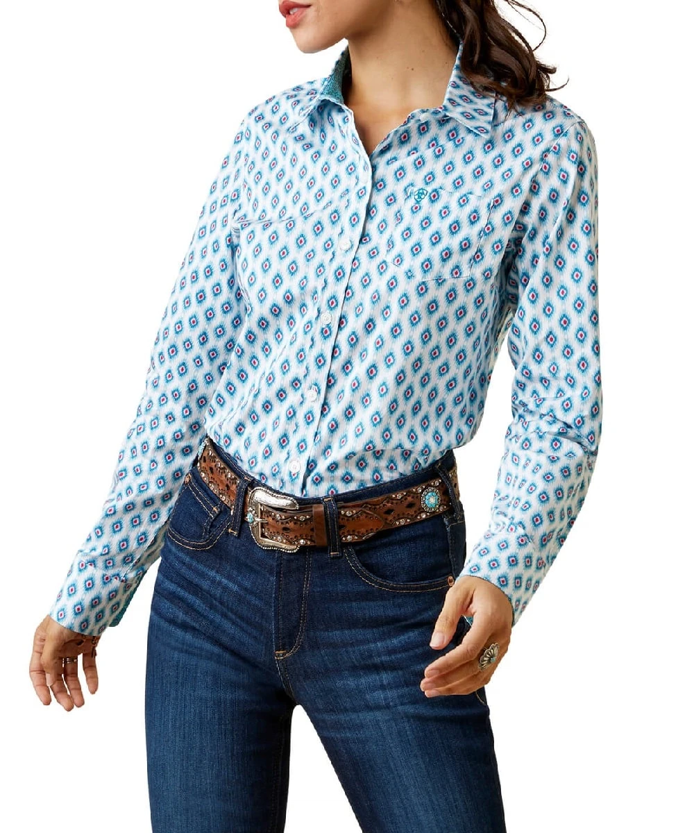 96% Cotton/4% Spandex; Wrinkle Resist; Stretch Poplin; Long Sleeve; Spread Collar; Single Open Left Chest Pocket With Logo Embroidery; Button Down Placket And Cuffs; Contrast Cuffs; Straight Back Yoke With Logo Embroidery; Color: Day Dreamer; Style #10043474