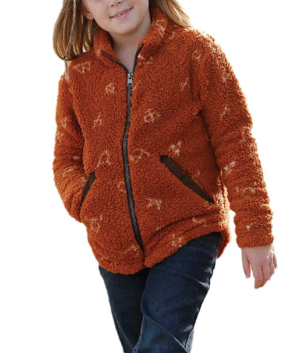High Pile Polyester Fleece; Stand Up Collar; Two Open Welt Hand Pockets With Faux Suede Trim Accent; Native American Symbol Print Design; Style #CWJ8590001