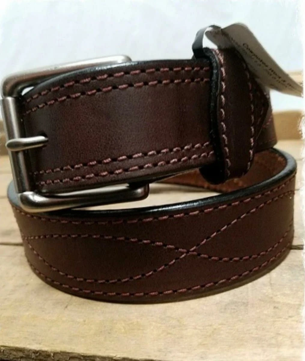 1.5″ Wide; Unsplit Natural Material; Slight Variations In Thickness; No Stretch Leather; Figure 8 Light Brown Stitching; Silver Buckle; Heavy Duty Work Belt; Made In USA; Color: Dark Brown; Style #8019-36