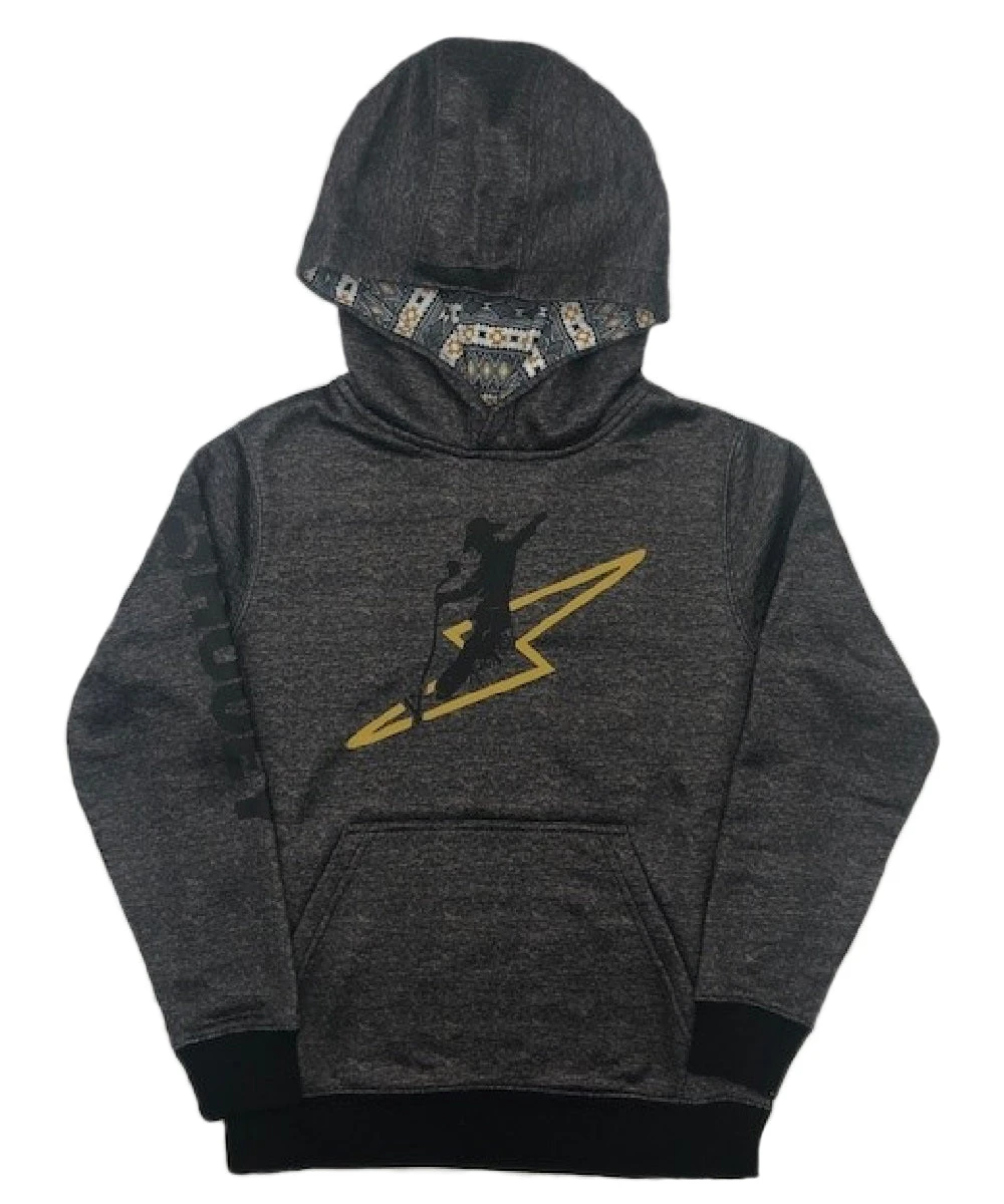 Signature Soft Feel; Double Lined Hood; Reinforced Cuffs And Waist Band; Strengthened Kangaroo Pocket; Back Yoke Detailing; Standard Fit; Interior Hood Print; Front Cowboy Riding Lightning Bolt Print; Hooey Print Down Right Sleeve; Style #HH1179CH-Y