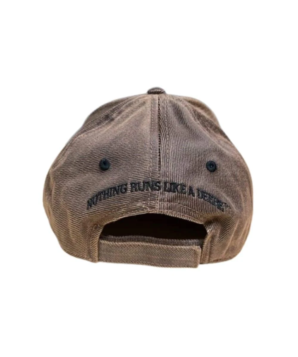 100% Cotton Twill; 6 Panel Construction; Color: Brown; Embroidered John Deere Logo; Embroidered Barbed Wire Accent On Bill; Back Embroidery Reads: Nothing Runs Like A Deere; Adjustable Velcro Closure;Â Â Style #13080099