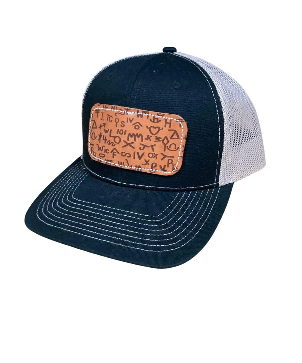 6 Panel Construction; Black Front Panels And Brim; Tan Stitching; Tan Mesh Back; Leather Patch With Cow Branding Design; Snap Back Closure; Style #CAP-06-REG BRANDS