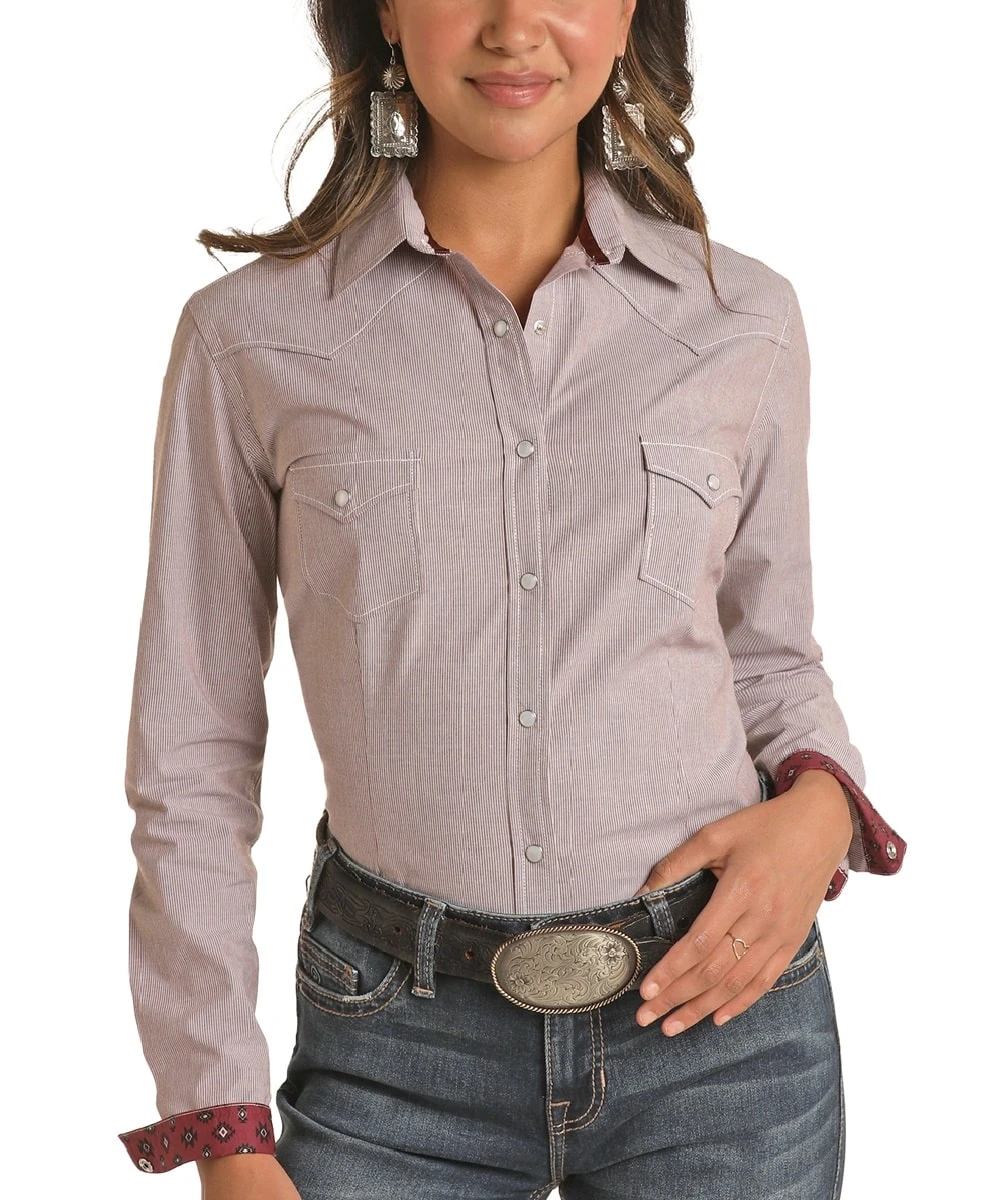 Long Sleeve; Spread Collar; Pearl Snaps; Snap Front And Cuffs; Two Snap Flap Chest Pockets; Single Point Front Yoke; Contrast Trim On Cuffs And Neck Lining; Color: Burgundy; Style #RSWSOSRYU2