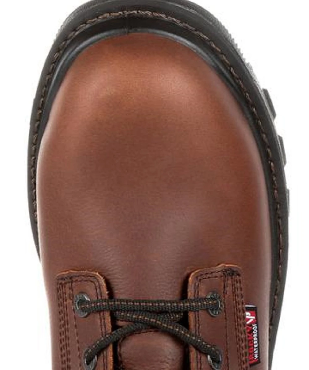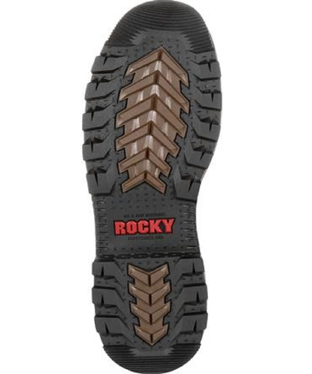 Lace Up; Full Grain Leather; Rocky Vapor Pass Waterproof Technology; EnergyBed LX Footbed With Memory Foam; Flexible Direct Attached PU Midsole; Fiberglass shank; Milled Brass Hardware; Rocky Rebound Comfort Technology For Energy Return; Composite Toe Meets I/75, C/75 And ASTM F2413 Protective Toe Standards; Electrical Hazard Rated And Meets ASTM F2413 Electrical Hazard Standards; Oil And Slip Resistant Rubber Outsole; Style #RKK0257